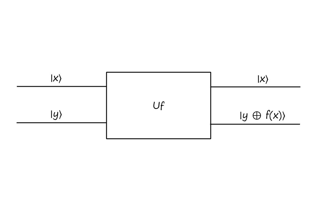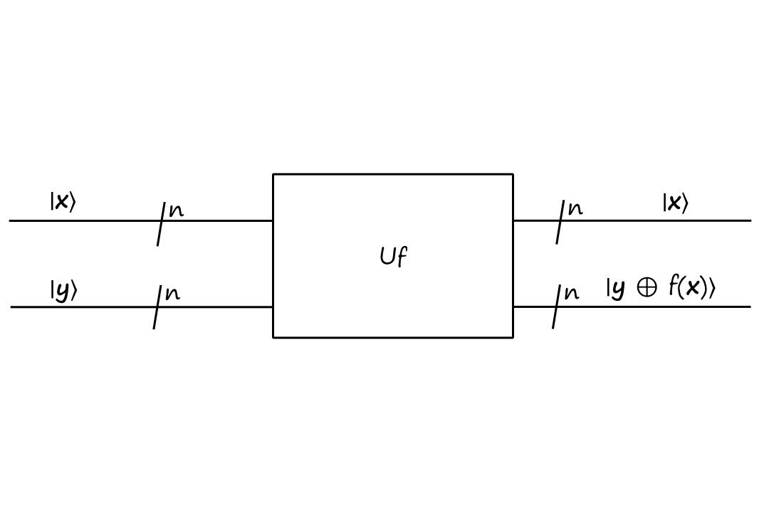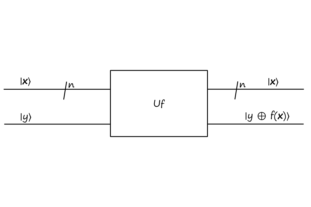 However, there is a way to "distinguish" the binary strings by what `f` would output for them. We do this by constructing our own function `U_f` where the output of `U_f` depends on the value of `f`.