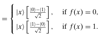 `=1/2``(``(-1)^(f(00))``|00:)H``|1:)+``(-1)^(f(01))``|01:)H``|1:)+``(-1)^(f(10))``|10:)H``|1:)+``(-1)^(f(11))``|11:)H``|1:))`