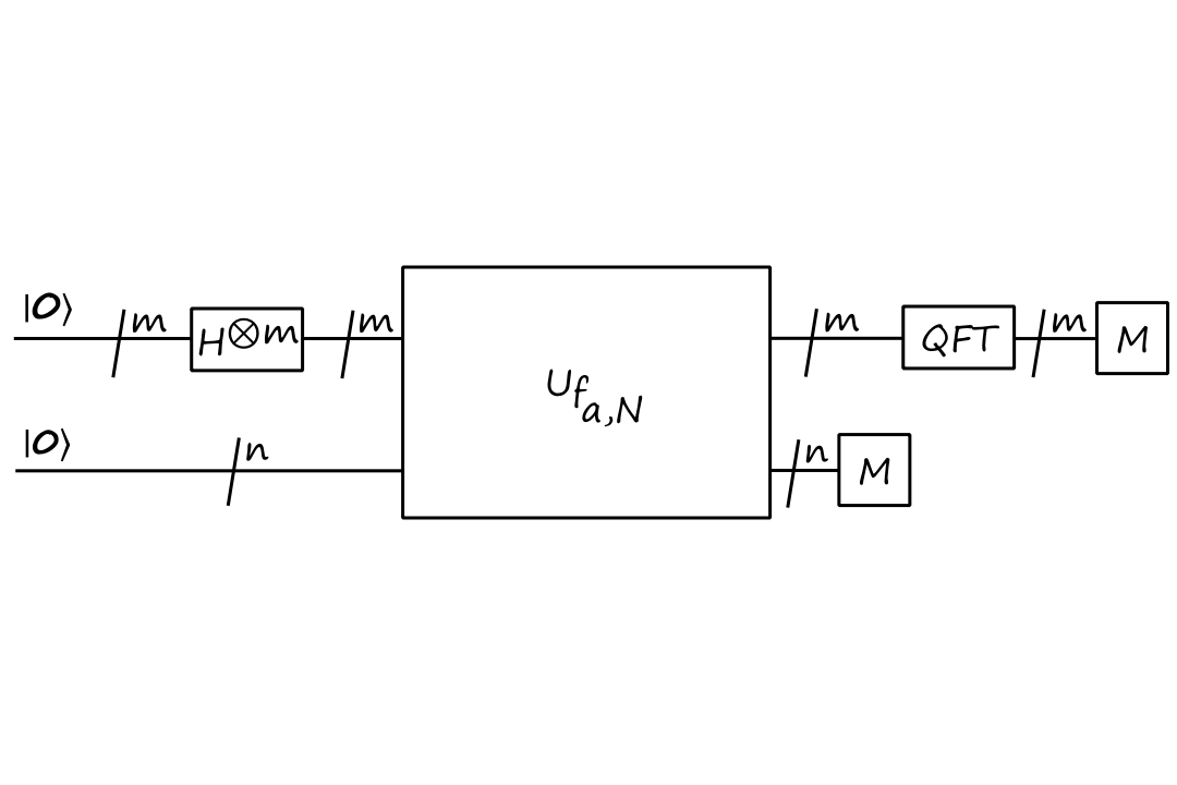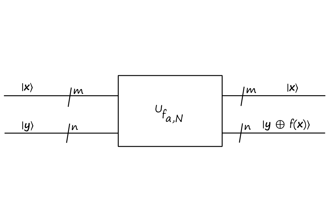 The quantum circuit that implements `f_(a,N)` (a.k.a. the oracle) is